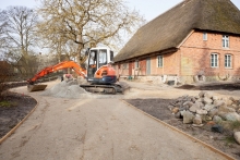 Im zauberhaften, historischen Schweriner Stadtteil Mueß lassen wir passend zum Ambiente von Haus und Umfeld einen Bauerngarten wieder aufleben. Zu Beginn erledigen wir die Pflasterarbeiten, es werden Wege und Wasserrinnen in authentischem Klinker und Natuerstein angelegt.